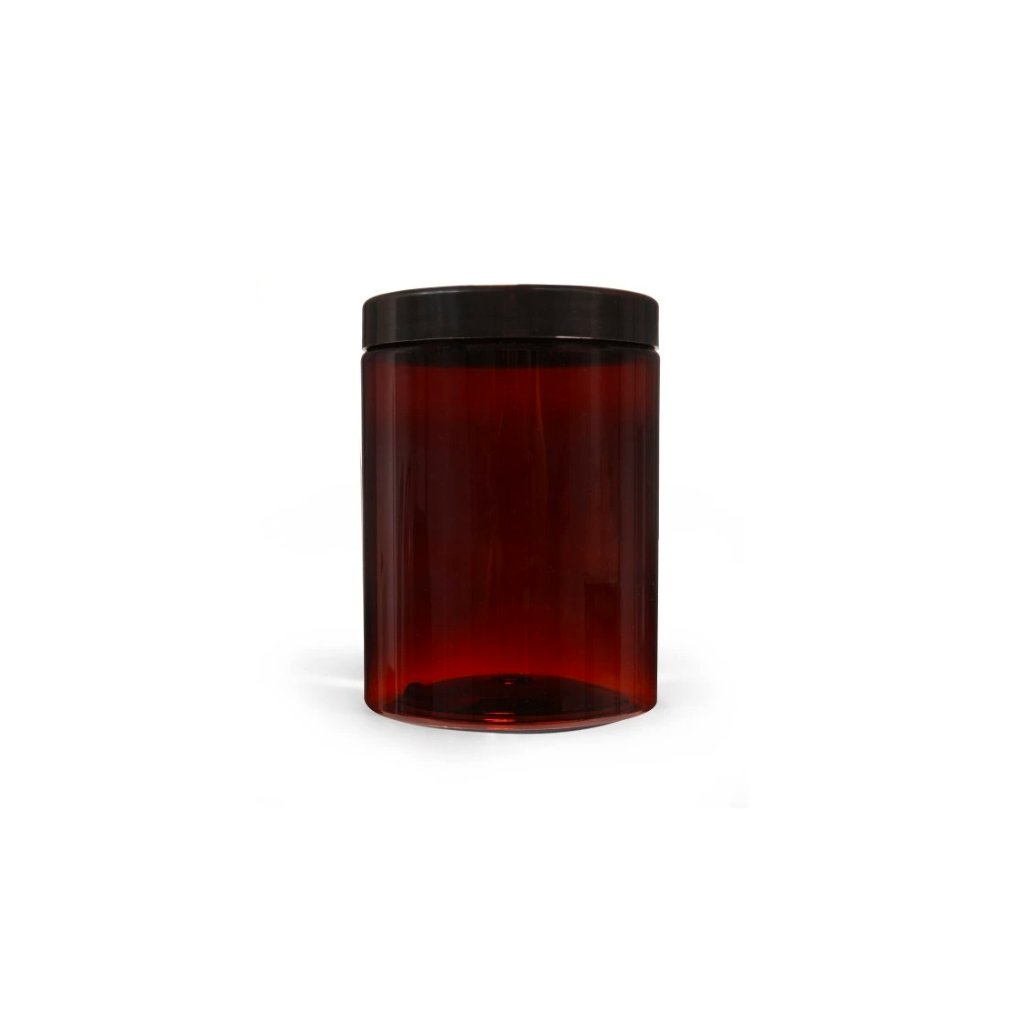 Plastová dóza hnědá s černým uzávěrem 1000 ml vhodná pro skladování. Certifikováno pro styk s potravinami/kosmetikou.