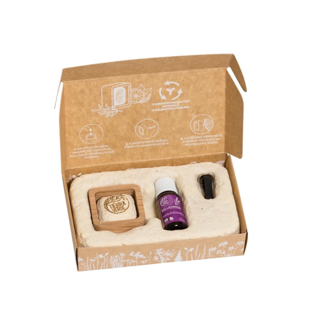 Abyste osvěžovač mohli hned použít, najdete v sadě i lahvičku BIO lavandinového esenciálního oleje. Jeho sladce květinová vůně se svěžími až kafrovými tóny harmonizuje a povzbuzuje mysl. Tento olej získávaný destilací květů vyniká typickou vůní „francouzské levandule“ a je vhodný také pro kosmetické použití.